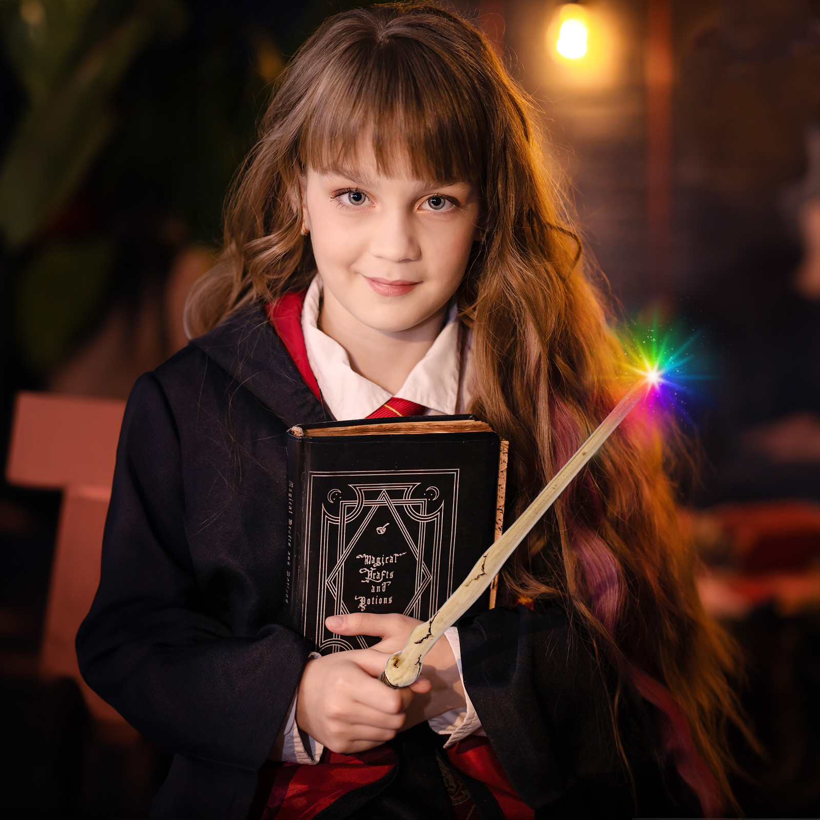 【Upgraded Light Up Wand】 Experience a magical display with charming dynamic gradient lighting. With just a simple press, the wizard wand lights up in captivating flickering colors.